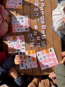 Des Weiteren schaffen wir einen anregenden Raum mit vielfältigem Material, das die Kinder zum Wahrnehmen, Handeln und Sprechen motiviert. Diese offene Umgebung fördert die eigenständige Sprachentwicklung und unterstützt die Kinder darin, ihre sprachlichen Kompetenzen spielerisch zu erweitern.